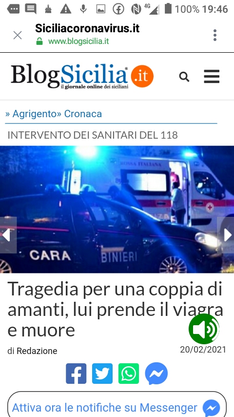 L’uomo, un cinquantenne, sposato, prima dell’incontro avrebbe preso una pillola di Viagra ed è deceduto, verosimilmente per un infarto, mentre era con l’amante, una quarantacinquenne. La scappatella è finita con l’arrivo dei sanitari del 118, l’arrivo delle forze dell’ordine e il medico legale.
