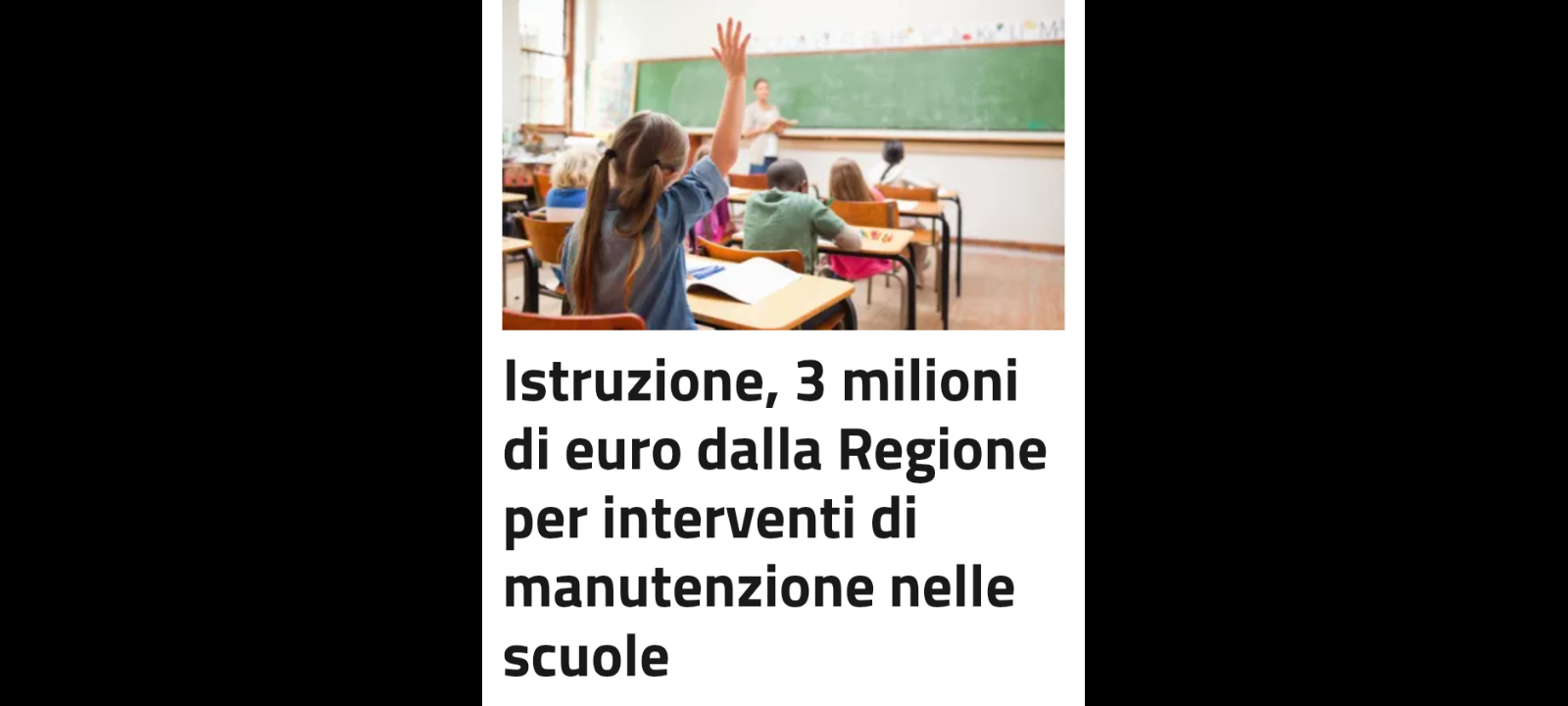 Si interviene per rimuovere i rischi imminenti e le compromesse condizioni di vivibilità degli ambienti e garantire la continuità dell’attività scolastica, la pubblica incolumità, l’igiene e la sicurezza degli edifici. Come specificato nella circolare, disponibile sul sito della Regione a questo link, l’importo massimo finanziabile per ciascun intervento è di 40 mila euro, fatte salve eventuali ulteriori somme che saranno poste a carico del bilancio dell’ente locale proprietario dell’edificio scolastico.