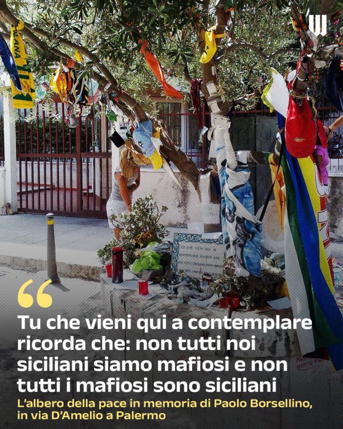 «-Tu che vieni qui a contemplare ricorda che…, non tutti i siciliani siamo mafiosi e non tutti i mafiosi sono siciliani-: questa frase possiamo leggerla su una targa ai piedi dell’Ulivo della Pace che è stato piantato il 19 luglio 1993 per volere della mamma di Paolo Borsellino, Maria Pia Lepanto». Hanno scritto questo, oggi 12 luglio 2022 sulla loro Pagina Facebook, i responsabili di Will Media.