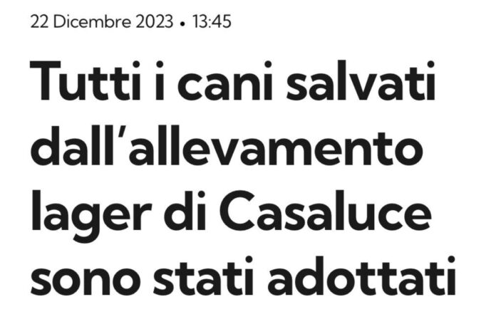 “Tutti i 400 cani che il 20 ottobre 2023 furono sequestrati da un canile lager di Casaluce, in provincia di Caserta, sono stati adottati e ora hanno una famiglia: nasce il ‘Modello Casaluce’… circa 2 mesi fà dopo il “pressing” del Partito Animalista Italiano, di Stop Animal Crimes e altre associazioni, con l’avv. Cristiano Ceriello che spinse la Procura di Napoli Nord ad intervenire, i volontari guidati da Carmine Munno ottennero la custodia giudiziaria della struttura”. Lo evidenziano in un comunicato diffuso nelle ore scorse, i responsabili del P.A.I. (Partito Animalista Italiano).