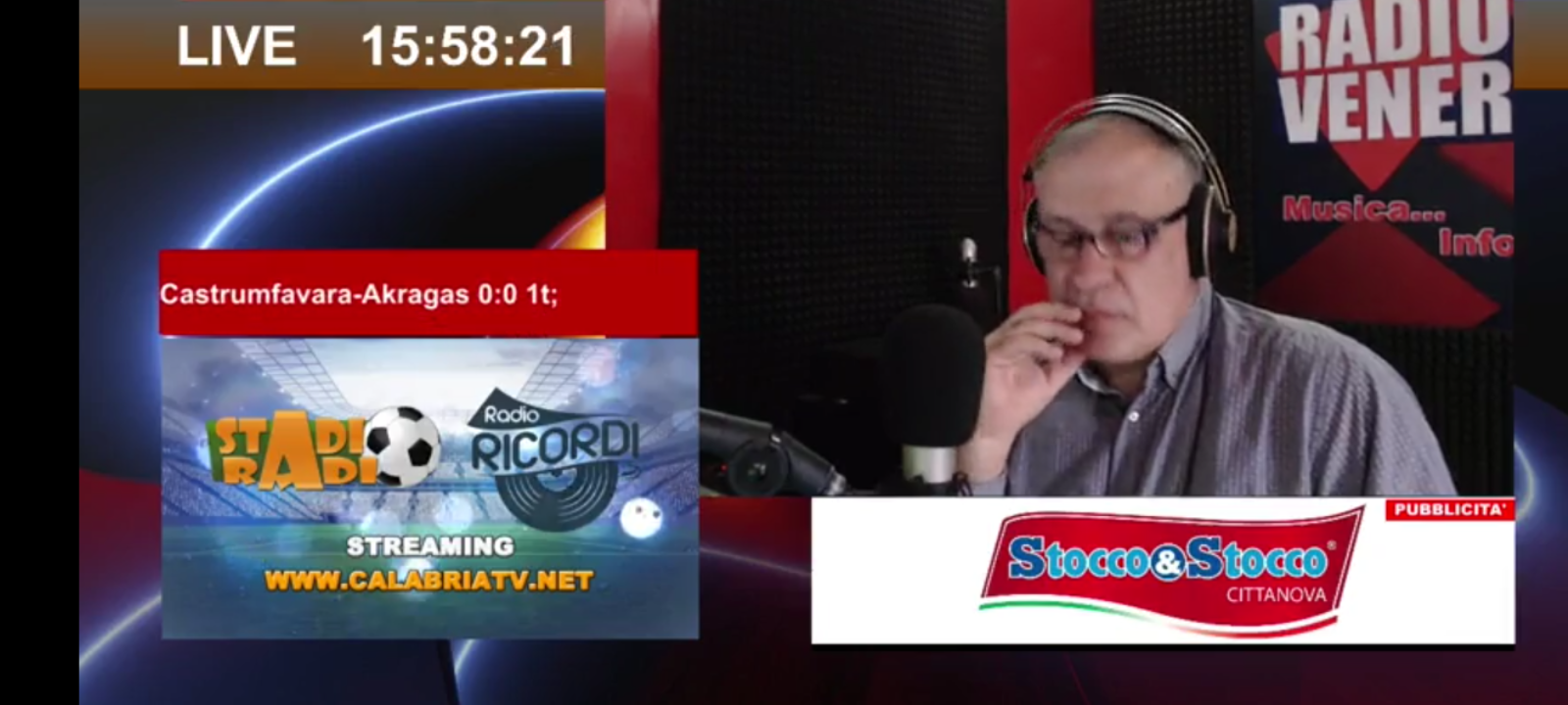 ‘Tutti i risultati dai campi di Calcio calabresi…, le Squadre della Calabria impegnate nei diversi Campionati sono le protagoniste delle telecronache di StadioRadio’. Sono i contenuti della trasmissione iniziata in diretta…, dopo le 15.00 di oggi 22 settembre 2024 su… www.stadioradio.it, sul ‘Canale 13 del Digitale terrestre di Calabria Tv’, sui 90.0 MHz in F.M. di ‘Radio Ricordi’ e sui 98.0 MHz in F.M. di Radio Venere di Bovalino… che è giunta alla 21^ Edizione.