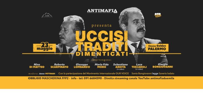 Di tutto ciò e tanto altro ne parleremo lunedì 23 maggio 2022 presso il Cinema Golden di Palermo, ore 18:30, con il Consigliere togato al Csm Nino Di Matteo, il procuratore aggiunto di Reggio Calabria Giuseppe Lombardo, l’ex procuratore generale di Palermo Roberto Scarpinato, la figlia dell’onorevole Aldo Moro assassinato dalle Brigate Rosse e dallo Stato, Maria Fida Moro; il Consigliere togato al Csm Sebastiano Ardita (in video); il procuratore aggiunto di Firenze Luca Tescaroli (in video); e il direttore di Antimafia Duemila Giorgio Bongiovanni. Con la partecipazione del Movimento internazionale Our Voice, la cui leader e fondatrice Sonia Bongiovanni leggerà Saverio Lodato.