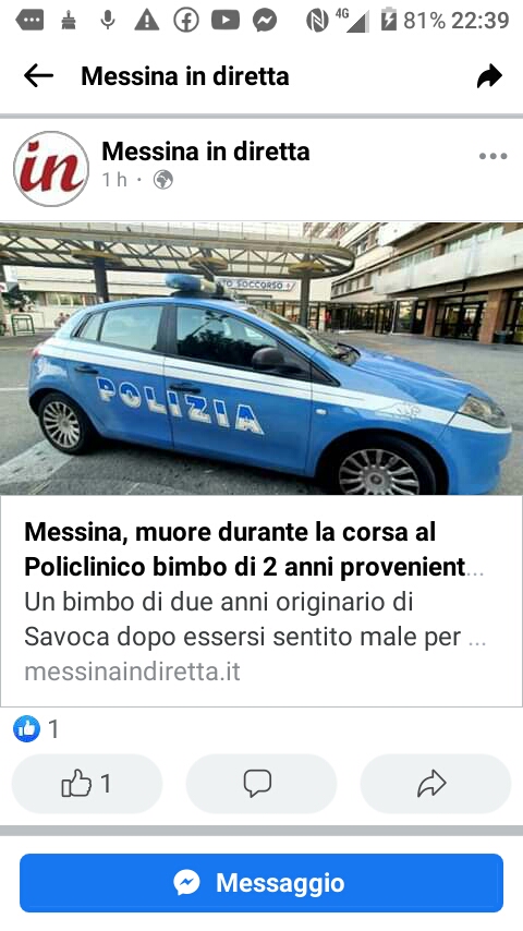 Purtroppo per il piccolo, al suo arrivo nel nosocomio peloritano, i medici hanno potuto constatare solo l’avvenuto decesso. Sulla tragedia, indagano gli agenti della Polizia di Stato, per comprendere se l’esito nefasto sia sopraggiunto a causa di omissioni da parte del diverso personale sanitario coinvolto.