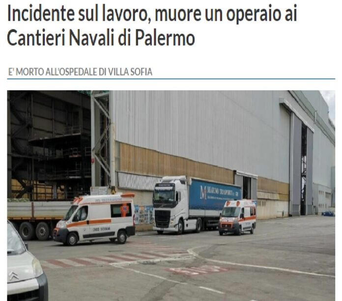 - Un operaio è morto ai cantieri navali di Palermo: l’incidente si è verificato ieri pomeriggio nell’impianto di Fincantieri;