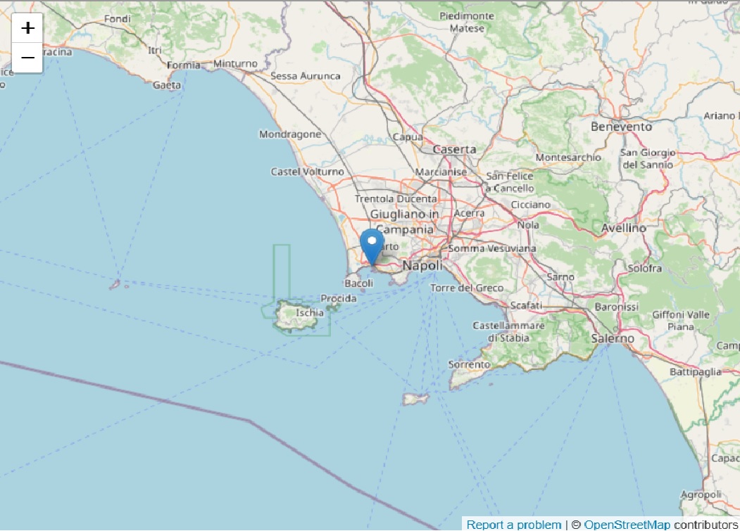 Le coordinate geografiche dell’evento sisimico…, sono… (lat, lon) 40.8310, 14.1110 ad una profondità di 3 km. Il terremoto è stato localizzato da… Sala Operativa INGV-OV (Napoli).