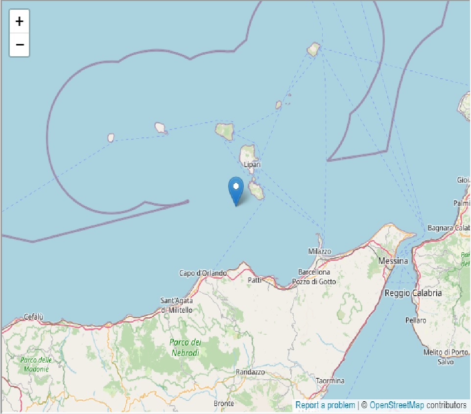Un terremoto di magnitudo ML 4.6 è avvenuto nella zona: Isole Eolie (Messina), il 04-12-2022 alle ore 08:12:45 (UTC +01:00) ora italiana, con coordinate geografiche (lat, lon) 38.3540, 14.8590 ad una profondità di 3 km.