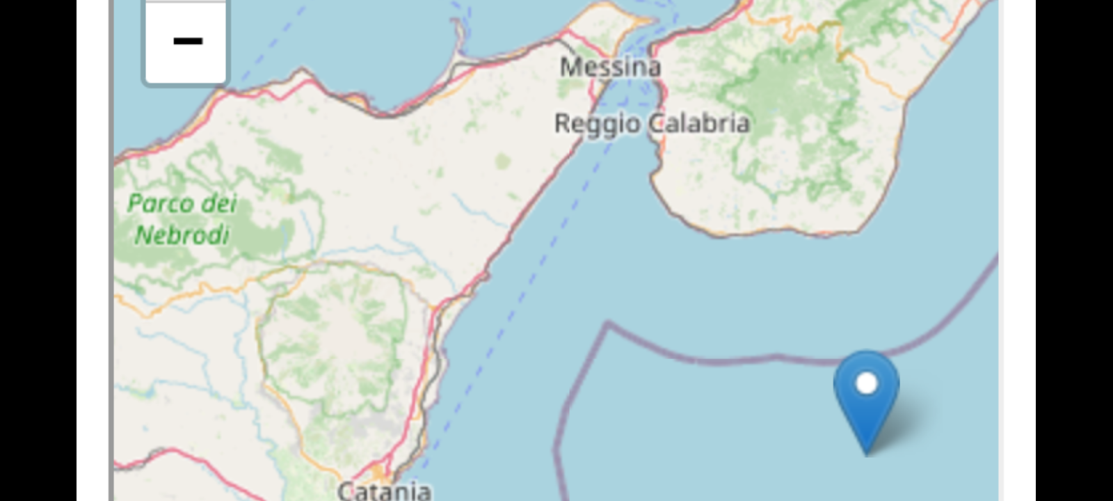 Il movimento tellurico, è stato rilevato nel sito avente le seguenti coordinate geografiche (lat, lon) 37.5578, 16.0773 ad una profondità di 48 km. La scossa, è stata localizzata dai membri della Sala Sismica dell’INGV (Istituto Nazionale Geofisica e Vulcanologia)-Roma.