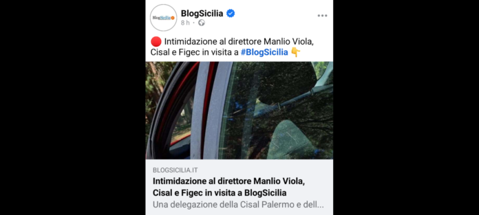 “I danneggiamenti all’automobile del direttore di BlogSicilia, Manlio Viola, sono episodi inquietanti e l’ennesima prova delle condizioni a volte difficili in cui si trovano a lavorare i giornalisti – dicono i rappresentanti di Cisal e Figec -. Difendere la libertà di stampa significa anzitutto assicurare ai giornalisti le dovute tutele e la nostra visita alla redazione di BlogSicilia vuole essere un segno concreto di solidarietà a Viola e alla sua redazione che vada oltre le semplici parole”.