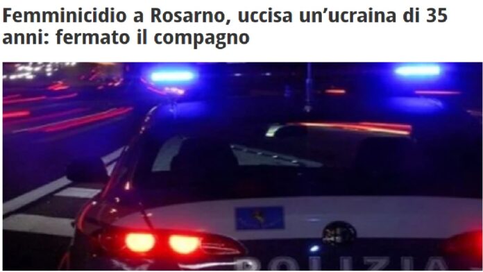 Una donna di nazionalità ucraina di 35 anni, della quale non è ancora stata resa nota l’identità, è stata uccisa a Rosarno, nell’appartamento in cui viveva con il compagno, anche lui ucraino. L’uomo è stato fermato nella notte dalla polizia, dopo alcune ore di ricerche, ed è sospettato di essere l’autore dell’omicidio.