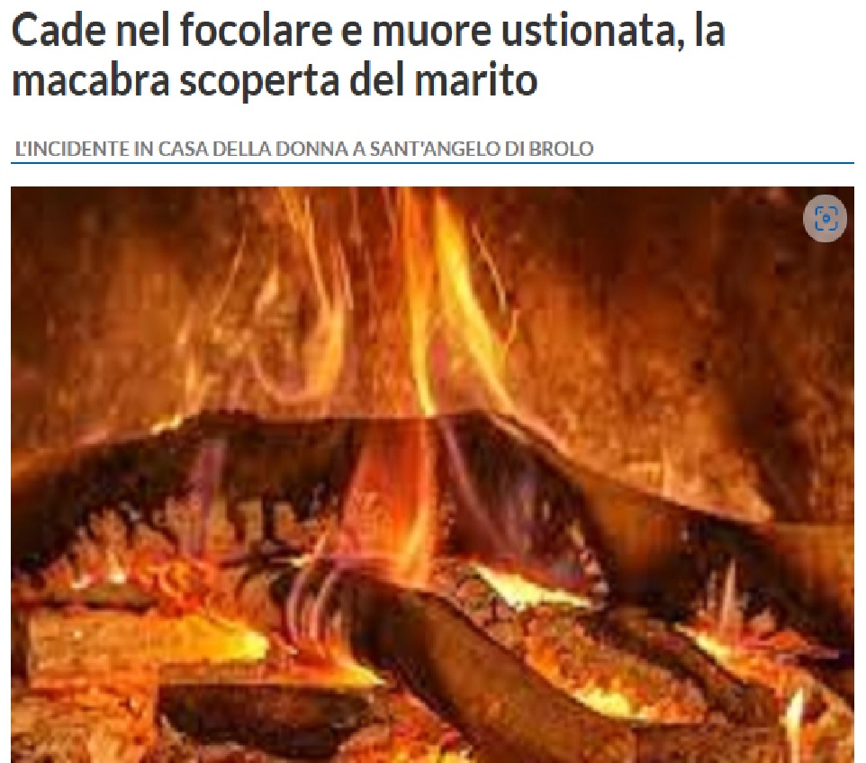 L’uomo…, si è accorto di tutto dopo essere tornato dalla legnaia dove si era recato per prendere altra legna da ardere. Era però troppo tardi per potere dare soccorso alla donna rimasta ustionata in tutto il corpo.