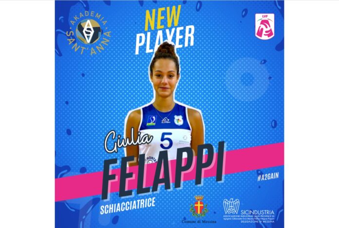 Una giovane schiacciatrice per Akademia Sant’Anna: un’altra attaccante si aggrega ufficialmente al team messinese. Dalla Blu Team Pavia di Udine arriva la bergamasca Giulia Felappi, che si aggiunge a Kelsie Payne, Jessica Joly e Aurora Rossetto, nella batteria di prime linee laterali del club messinese.