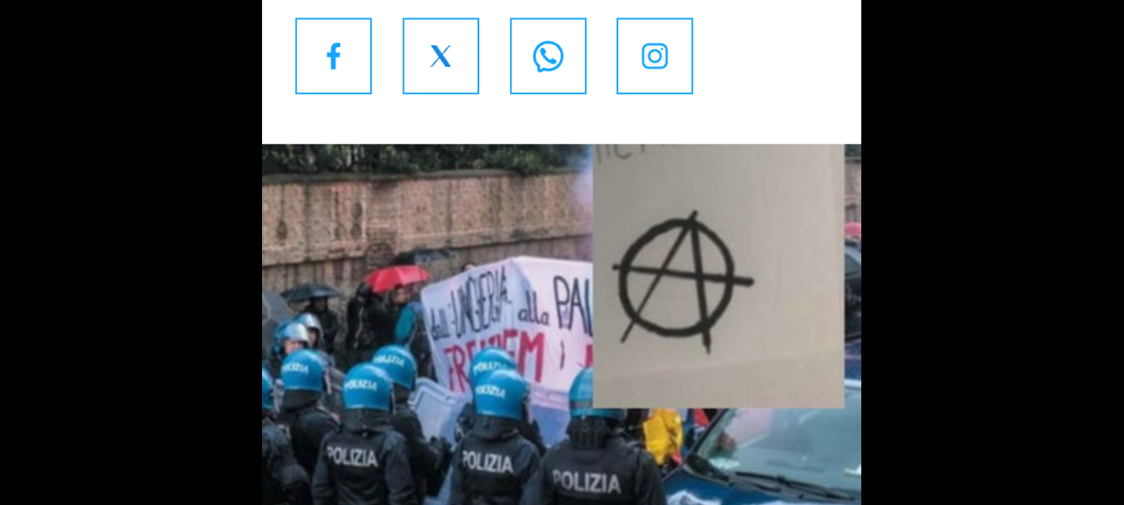 ‘«Servi del potere morirete», è solo una delle minacce che si leggono nella missiva: La firma è la classica “A” cerchiata degli anarchici… è subito partita la denuncia ai carabinieri che hanno già provveduto a fare i rilievi del caso’.