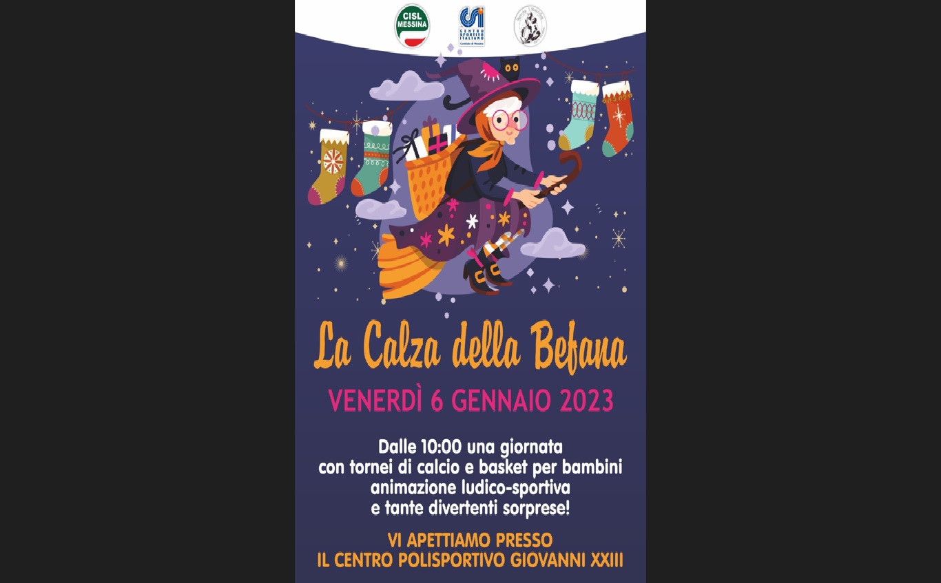 Una mattinata di sorprese, tra tornei di calcio e basket per bambini, animazione e la classica…calza della Befana: si chiuderà all’insegna del divertimento “Natale in Periferia”, il cartellone natalizio promosso dalla Cisl Messina, dal Centro Sportivo Italiano e dalla Parrocchia di S. Maria del Gesù con il patrocinio del Comune.