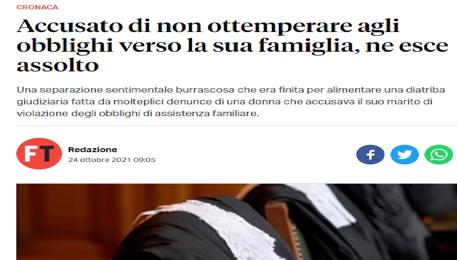 Una separazione sentimentale burrascosa che era finita per alimentare una diatriba giudiziaria fatta da molteplici denunce di una donna che accusava il suo marito di violazione degli obblighi di assistenza familiare