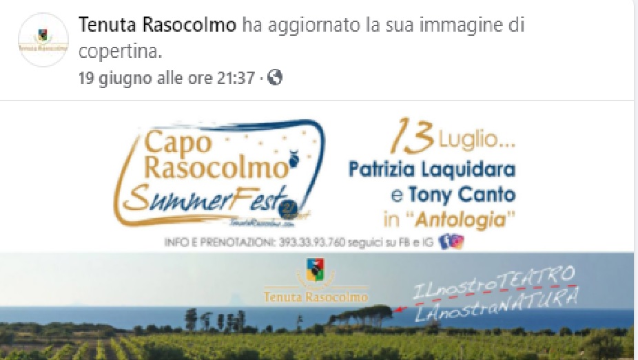Una storia di musica ed emozioni, una raccolta di brani di due grandi artisti che hanno portato e continuano a portare la Sicilia nel mondo. Saranno Tony Canto e Patrizia Laquidara ad aprire domani sera alle 19 presso la tenuta Rasocolmo, a Piano Torre, l’edizione 2021 del “Capo Rasocolmo Summer Fest”.