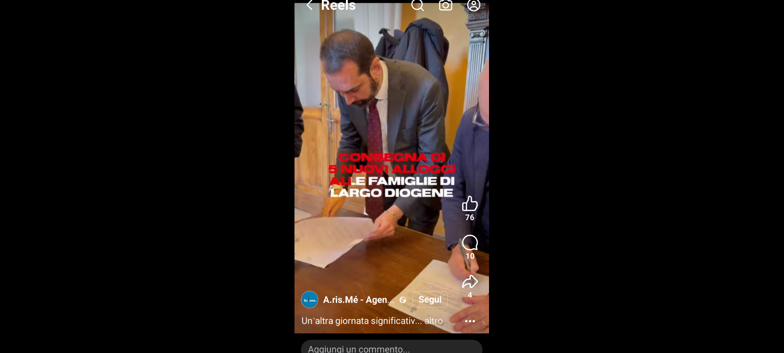 - “Per le famiglie si apre adesso una fase importante… ✔️ 45 giorni per effettuare il trasloco; ✔️ attivare le utenze; ✔️ trasferire la residenza. Al termine, sarà firmato il contratto di locazione con un canone proporzionato al reddito, a tutela delle condizioni economiche dei nuclei coinvolti”;