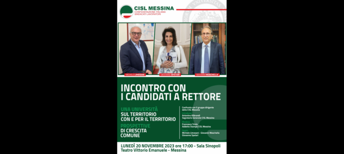Una Università che opera sul territorio, con e per il territorio, prospettive di crescita comune. Sarà questo il filo conduttore che animerà il confronto organizzato dalla Cisl Messina con i candidati alla carica di Rettore dell’Ateneo di Messina per il sessennio 2024-2030.