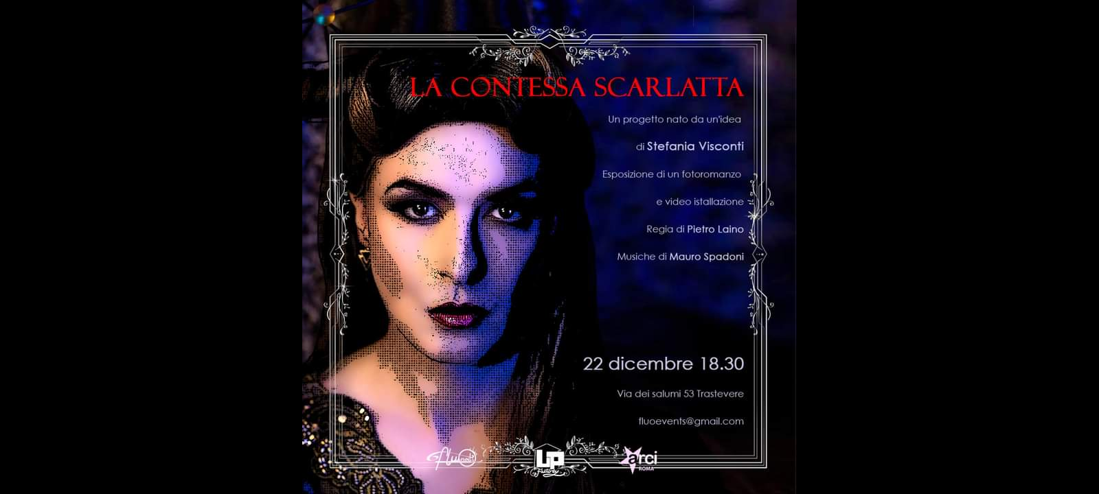 LA CONTESSA SCARLATTA DA UN’IDEA DI STEFANIA VISCONTI, UNO SPETTACOLO PRESENTATO A ROMA PRESSO TRASTEVERE IN ‘VIA DEI SALUMI, 53’ IL 22 DICEMBRE 2023 DA UP URBAN PROSPECTIVE FACTORY CON UNA ESPOSIZIONE DI UN FOTOROMANZO E VIDEO INSTALLAZIONE: