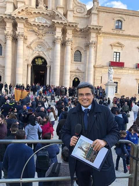 Scrive il giornalista della Rtp e di Tgs: “in diretta dal centro storico di Siracusa la prima parte della diretta della Festa di Santa Lucia. Con il commento di Salvo La Rosa e Aurora Fiorenza”.