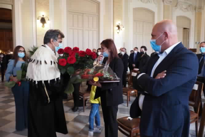 Alle 11.29 di oggi Lorena Quaranta, studentessa dell’Università di Messina vittima di femminicidio a Furci Siculo, nello scorso mese di marzo, è stata proclamata dottoressa in Medicina e Chirurgia, con la votazione di 110 e lode. La pergamena di laurea è stata consegnata, nel corso di una cerimonia in Aula Magna, alla famiglia della giovane. Erano presenti, fra gli altri, gli amici e colleghi del Corso di laurea, i Prorettori, i Direttori di Dipartimento, il Procuratore aggiunto della Procura di Messina, dott.ssa Giovannella Scaminaci, la dott.ssa Caterina Minutoli (in rappresentanza del Prefetto di Messina), la dott.ssa Maria Andaloro, ideatrice della campagna “Posto occupato” e la Presidente del Comitato Unico di Garanzia d’Ateneo, prof.ssa Concetta Parrinello.
