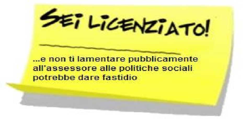 “La licenziata che ascoltava a sentire tutte queste fantasie è intervenuta pubblicamente smentendolo. Adirato il sindaco ha invitato la signora al Municipio per parlarne in un incontro privato. All’incontro privato la licenziata si è presentata con altri licenziati di questa Amministrazione. Bene è stata ricevuta, così come promesso, insieme al marito (sono stati lasciati fuori gli ex colleghi). Erano presente anche l’assessore alle Politiche Sociali e il funzionario Alessi, che pare abbiano strapazzato la signora, accusandola di dire il falso insieme ai suoi amici dell’Ispettorato del Lavoro e ad alcuni giornalisti (non allineati) e invitandola a tacere”.