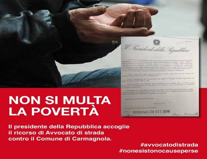 “Alessandro sa difendersi ovviamente da solo e lo ha già fatto con un contro video, con il quale smentisce anche le solite bufale deluchiane. Mi permetto però di suggerire ad Alessandro, di NON autodenunciarsi e non pagare alcuna multa, di portare fino in fondo la sua obiezione civile e di arrivare anche al ricorso contro questa immonda ordinanza. Organizziamo magari un Comitato cittadino contro l’ordinanza sindacale, per sostenere tutti i ricorsi che da qui in avanti si vorranno presentare. Non si multa la povertà”.