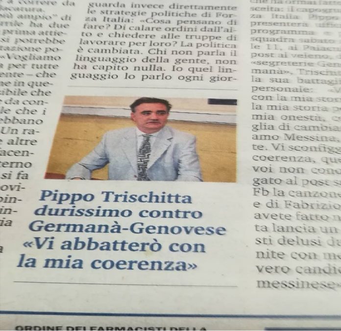 Questo, è un post scritto su Facebook dal Consigliere Comunale Pippo Trischitta, capogruppo di Forza Italia a Palazzo Zanca e candidato a sindaco di Messina per le prossime elezioni del 10 giugno.