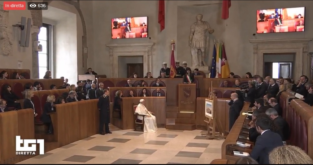 26 marzo 2019 – La diretta della visita di Papa Francesco in Campidoglio, Oltretevere. Il pontefice, è accolto in Consiglio Comunale dai rappresentanti dell’Assise e dalla sindaca di Roma Virginia Raggi.