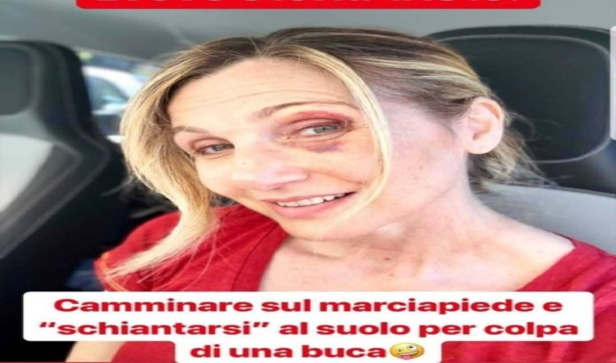 Per colpa di una buca: la caduta di Lorella Cuccarini, che venerdi’ ha rimediato un occhio pesto.