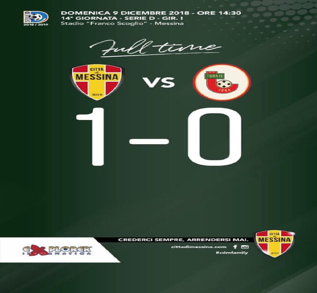 Lo avevamo detto in tempi non sospetti: questo Città di Messina aveva solo bisogno di un po di rodaggio. Giunti alla XIV^ Giornata di Campionato l’esame più tosto era quello della Turris, sconfitta questo pomeriggio grazie ad un prestazione cinica e difensivamente ineccepibile.