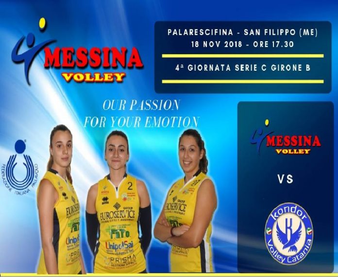 Per la 4^ giornata del Campionato di Serie C girone B, il Messina Volley sfiderà, fra le mura amiche del -PalaRescifina- la Kondor Volley Catania. Entrambe le compagini hanno lo stesso punteggio in classifica e provengono da due rotonde vittorie per 3-0, rispettivamente con il Volley ’96 e il CUS Unime.
