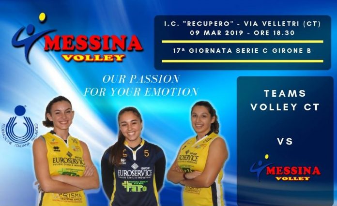 Il Messina Volley torna dalla trasferta etnea con una sconfitta per 3-0 contro la capolista Teams Volley Catania. Primo set equilibrato fino al 5-5, quando Stefania Criscuolo e Margherita Chiavaro portato a +2 (7-5) le locali. Il Messina Volley resiste, ma un break di 5 punti da il +7 (15-8) alle padrone di casa, con mister Danilo Cacopardo a chiamare il time-out. Il set scivola con questa distanza fino al punto di Giulia Mondello che accorcia a -5 (20-15).