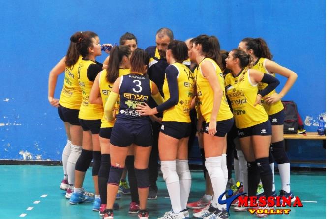 Il Team Volley si porta sul set point (15-24), ma Biancuzzo e capitan Scimone ne annullano due. Il punto di Pilar porta il match sul 2-0 (17-25) per il Team Volley. Biancuzzo e due punti di Mondello aprono il terzo a favore delle padrone di casa (6-3). La pipe di Pilar riduce il gap a -1 (6-5) ed il punto di Marra trova il +3 di casa (10-7). Il Team Volley chiama il time-out e Biancuzzo piazza il +4 (13-9) per il Messina Volley. Le ospiti trovano il break necessario che gli consente di portarsi a -1 (14-13), ma la fast di Mondello fissa il +3 (18-15). Ferrara chiede il secondo time-out ed al rientro il pallonetto di Cannizzaro allunga a +4 (20-16). Il Messina Volley allunga ulteriormente con l’ace di Marra (+6; 22-16). Il punto di capitan Scimone segna il set-point (24-18) con Recupero e Scilipoti ad annullarne due (24-20). Cacopardo chiama la pausa, ma al rientro il Team Volley accorcia ulteriormente (-3; 24-21). Il muro di Scimone chiude il parziale a favore della squadra di casa (25-21). Il set successivo si apre con un break ospite di +4 (0-4) con Scilipoti e Pilar a segno. Martina Millo allunga a +6 (1-7) con Cacopardo a chiamare time-out. Al rientro l’ace di Pilar trova il +7 (1-8), mentre la pipe di Mondello e il muro di Scimone accorciano per la squadra di casa (-5; 3-8). Più avanti sempre Mondello e Scimone, con l’aggiunta del punto di Marra, portano a -3 (8-11) la squadra di casa con Ferrara a chiedere la pausa. Al rientro ancora Marra e Mondello tracciano il -1 (10-11), ma Recupero sigla il punto che riporta a +4 le ospiti (10-14) con Cacopardo a chiedere time-out. Sempre Recupero con un ace allunga a+6 (10-16) ed un altro ace di Clara D’Arrigo, con il punto di Millo, danno il +8 (12-20) al Team Volley. Il Messina Volley reagisce e piazza un break di 4 punti che gli consente di accorciare a -4 (17-21) grazie a Cannizzaro, la pipe di Mondello, Scimone e Biancuzzo. Ferrara chiama il secondo time-out che risulta positivo per le sue giocatrici visto che si riportano a +6 (17-23) grazie a due spunti di Scilipoti. Le padrone di casa realizzano un altro break e si portano a -3 (20-23), con il Team Volley a siglare il 24-20. Le locali annullano tre set-point, portandosi con Mondello a -1 (23-24). Il punto di Recupero chiude parziale e partita (23-25). Nel prossimo turno il Messina Volley osserverà il turno di riposo vista la rinuncia del Paternò, mentre il Team Volley affronterà in casa il Volley ’96.
