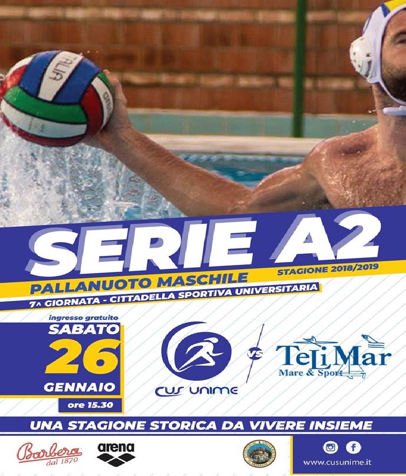 Sabato 26 altro appuntamento con la storia! Alle 15.30, alla Cittadella Sportiva Universitaria di Messina, per lo storico derby in Serie A2 Tra CUS Unime ASD e Telimar Pallanuoto. Il big match della settima giornata… entrambe le formazioni sono appaiate a quota 12 punti in seconda posizione nella graduatoria finale! Chi avrà la meglio?