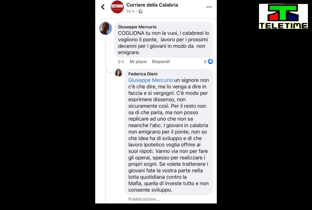 “Per far ripartire il sud non servono opere faraoniche, irrealizzabili e dannose per il territorio dal punto di vista ambientale, servono tante opere infrastrutturali interne, servono prospettive, servono servizi a partire dalla sanità, serve soprattutto consapevolezza e volontà di fare la propria parte contro la criminalità organizzata che imperversa sul nostro territorio e soffoca l’economia”. A scrivere questo, stamane sulla sua Pagina Facebook è stata la deputata nazionale calabrese dei 5 Stelle Federica Dieni.