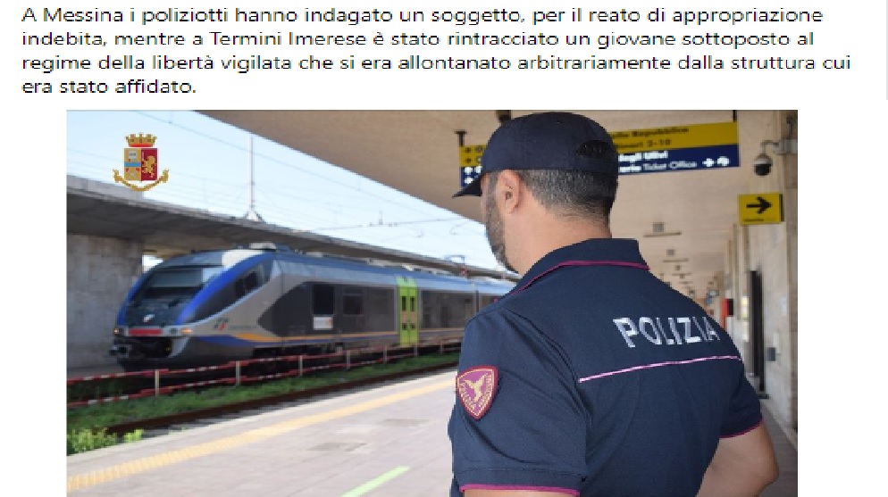 A Palermo, nel corso dell’operazione, gli agenti hanno arrestato un uomo per resistenza e violenza a Pubblico Ufficiale, denunciandolo anche per il reato di danneggiamento. A Messina i poliziotti hanno indagato un soggetto, per il reato di appropriazione indebita, mentre a Termini Imerese è stato rintracciato un giovane sottoposto al regime della libertà vigilata che si era allontanato arbitrariamente dalla struttura cui era stato affidato.