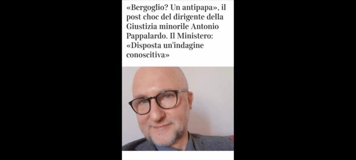 ‘Il Santo Padre, scomparso il lunedì di Pasquetta, è uno dei bersagli più frequenti dei post rilanciati dal canale Telegram «Logos e Libertas» che, scorrendolo, non ha mai risparmiato nemmeno l’Oms, l’Unione Europea, e non ha mai fatto mistero di tesi no vax, no green pass, ma anche di idee contrarie alla migrazione, ai diritti Lgbtq+ e chi più ne ha più ne metta: a gestire il canale Telegram una persona che ha già fatto profondamente discutere per le proprie posizioni negazioniste e contrarie ai vaccini durante la pandemia di Covid (che ha definito «l’Apartheid 2020-22»), Antonio Pappalardo, ovvero il direttore della Giustizia minorile di Emilia-Romagna e Marche’.