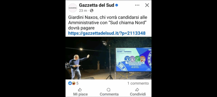 LO SOTTOLINEA IN UN POST ODIERNO PUBBLICATO SULLE SUE OMONIME PAGINE FACEBOOK, IL SINDACO DI TAORMINA, CATENO DE LUCA, DEPUTATO DELL'ASSEMBLEA REGIONALE SICILIANA E FONDATORE DEL 'MOVIMENTO SUD CHIAMA NORD'