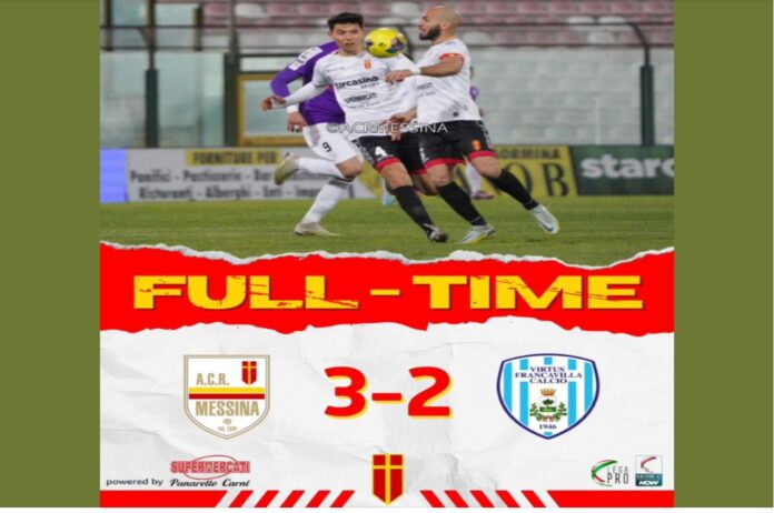 Continua il momento positivo del Messina: al Franco Scoglio, la squadra di Giacomo Modica batte la Virtus Francavilla per 3-2 nella 24ma giornata del girone C di serie C. Il quarto risultato utile consecutivo dopo i successi su Casertana e Taranto ed il pareggio con la Turris a Torre del Greco, arriva nel modo più folle ma permette ai siciliani di respirare ulteriormente con 29 punti in classifica ed un vantaggio momentaneo di 6 lunghezze sulla zona play out aspettando però il Monopoli che giocherà questa sera con l’Avellino.