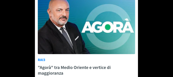 ‘Dalla crisi in Medio Oriente, con lo scontro sugli accordi per la tregua fra Israele e Hamas; gli aggiornamenti principali della politica italiana; i particolari, sul vertice di Governo a Palazzo Chigi sulla sanità e sulla riforma dei medici di medicina generale e del consiglio federale della Lega, convocato da Salvini per affrontare i temi della pace fiscale e della rottamazione delle cartelle; infine, un’intervista al Presidente della Regione Lazio, Francesco Rocca’. Sono questi i temi principali della puntata di Agorà che è iniziata in onda giovedì 13 febbraio alle 08.00 su #Rai3… con la conduzione di Roberto Inciocchi.