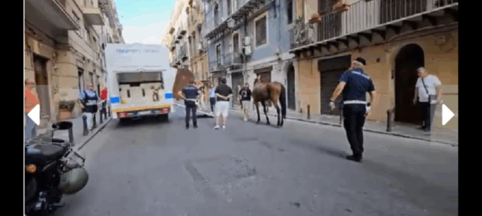 È stramazzato a terra sotto gli occhi di turisti e passanti davanti al Teatro Massimo di Palermo: il giorno seguente, 11 giugno, la Polizia Municipale ha identificato e multato il conducente della carrozza, nonché proprietario dell’animale, per violazioni al regolamento comunale che disciplina l’uso dei cavalli nel trasporto turistico.