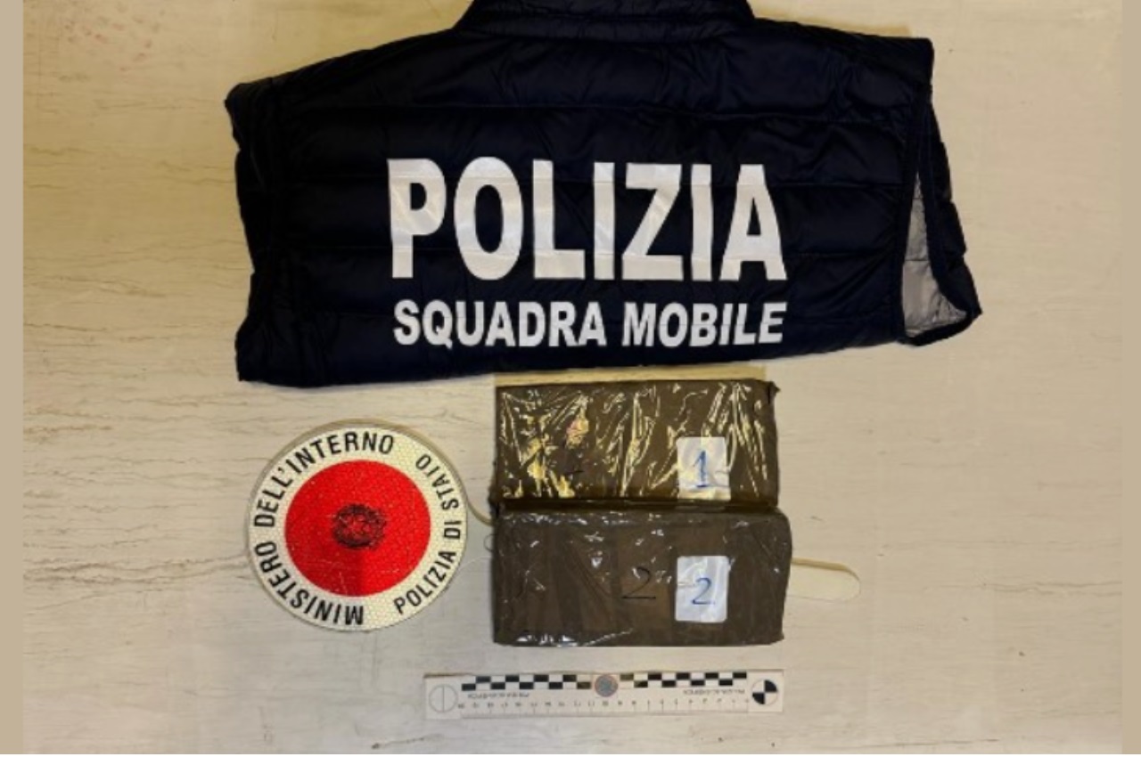 Un equipaggio della Squadra Mobile di Crotone, nei pressi della rotatoria del cavalcavia sud della città, ha notato l’uomo, conosciuto per i suoi pregiudizi specifici, alla guida di una autovettura, il quale, alla vista degli agenti, ha repentinamente accelerato, allontanandosi a velocità sostenuta. La manovra ha insospettito gli operatori, i quali hanno seguito e raggiunto l’automezzo, a bordo della quale si trovava anche la moglie, anche lei con pregiudizi, e i due figli in tenera età. Nel corso del conseguente controllo, sotto il sedile, gli operatori hanno ritrovato una busta con due panetti avvolti con nastro adesivo, contenenti poco più di un chilogrammo di eroina.
