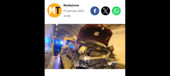 Nella serata di ieri 07 gennaio 2025, intorno alle ore 21.00 sulla Tangenziale di Messina all’uscita della Galleria Telegrafo nella carreggiata lato monte, si è verificato un incidente autonomo: il conducente di un’Alfa Romeo Giulietta per cause da chiarire, è improvvisamente uscito di strada andando a sbattere contro il guardrail.