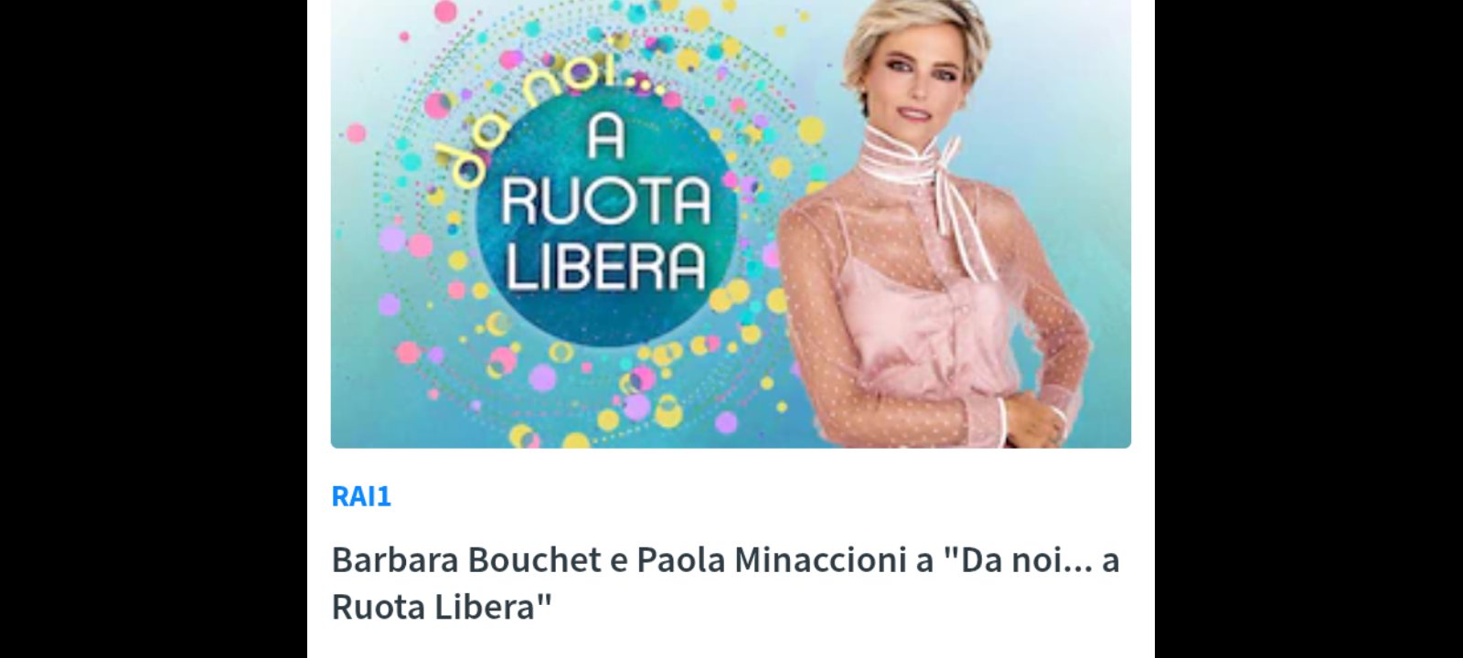 - Barbara Bouchet (attrice icona del cinema, del teatro e della tv, che si racconterà nel tu per tu con la conduttrice) sarà la prima ospite della puntata;