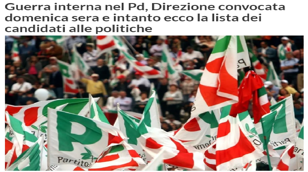 Scontri, guerre intestine e rinunce alla candidatura: nel Pd agitato dalle polemiche interne che stasera domenica 21 agosto, riunisce la direzione regionale per affrontare i temi delle candidature alla regione e della questione morale posta dal candidato Caterina Chinnici, piove da Roma la lista dei ‘prescelti’ per le politiche.