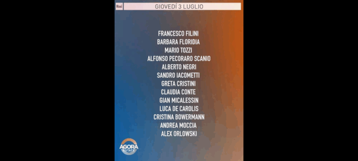 ‘Si parlerà di Medio Oriente… dopo l’annuncio di Donald Trump, crescono infatti le speranze di tregua tra Israele e Hamas: quest’ultima si dice pronta all’accordo ma chiede garanzie di pace e il ritiro dell’Idf dalla Striscia di Gaza; poi, i dazi: il 9 luglio si avvicina e il Presidente Usa ribadisce che non prorogherà la scadenza; infine, una pagina sul caldo estremo con l’ondata di calore in tutta Europa e le temperature sempre più alte che minacciano coltivazioni e allevamenti’. Sono questi…, i temi della puntata di “Agorà Estate” di oggi, giovedì 3 luglio alle 8.00 su Rai3.